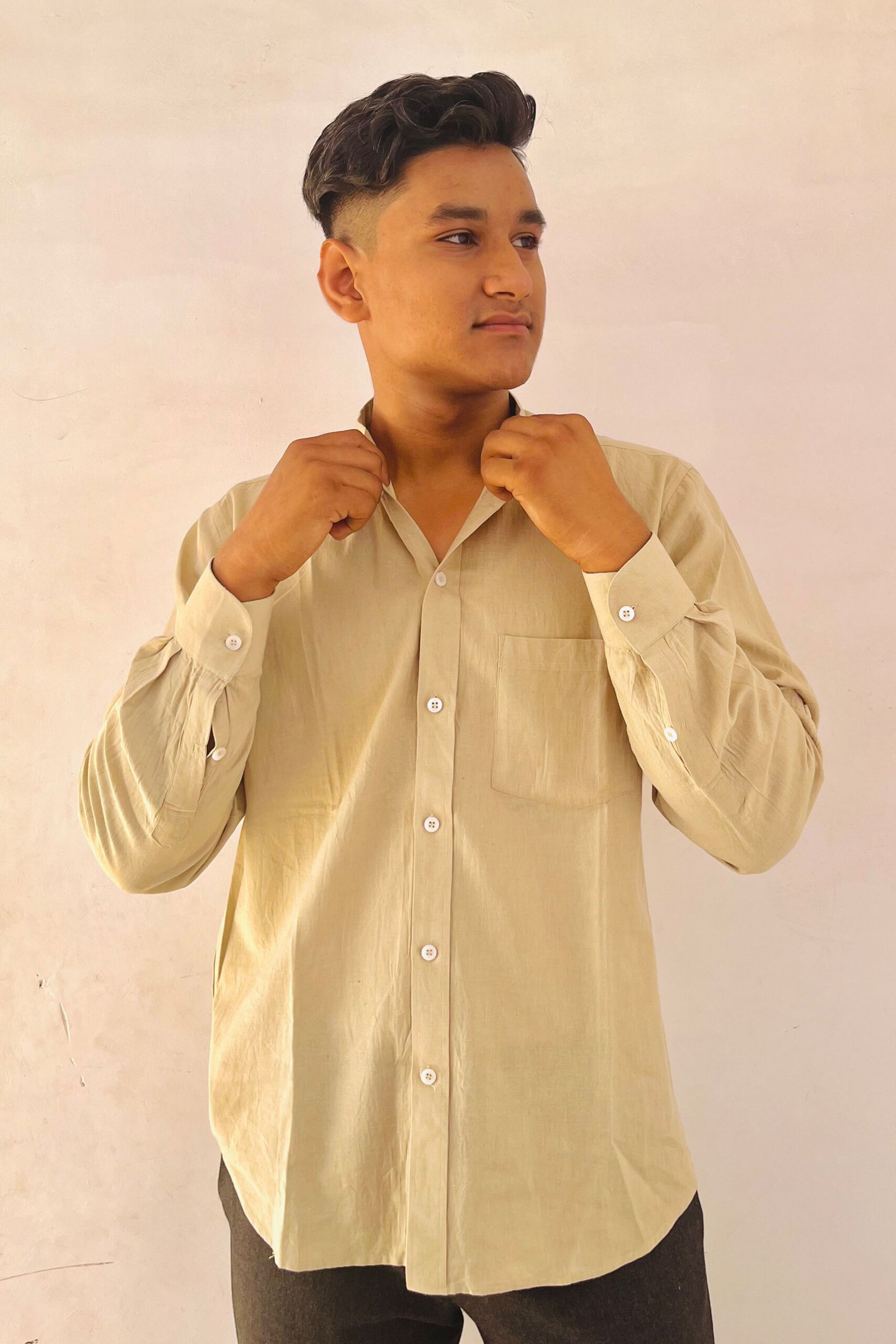 Classic Beige Men’s Long Sleeve Cotton Shirt – Effortless Style and Everyday Comfort