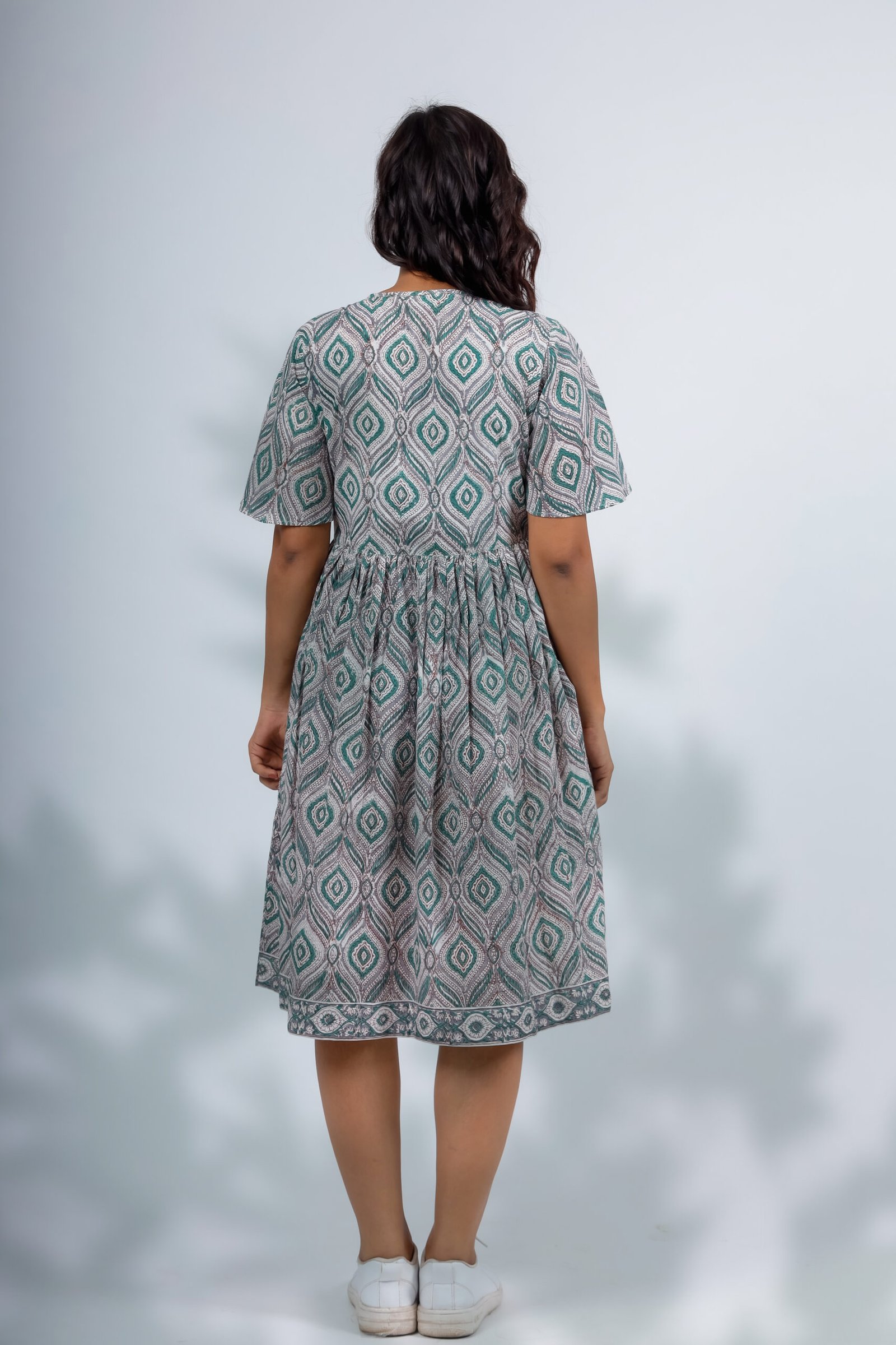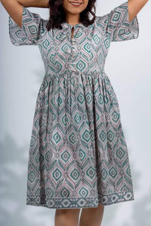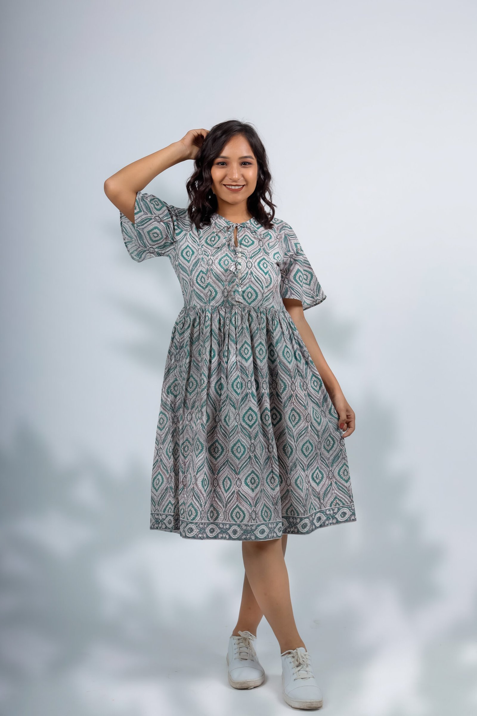 Green Leaf Vine Breezy Dress | Hand Block Printed Cotton Dress for Women