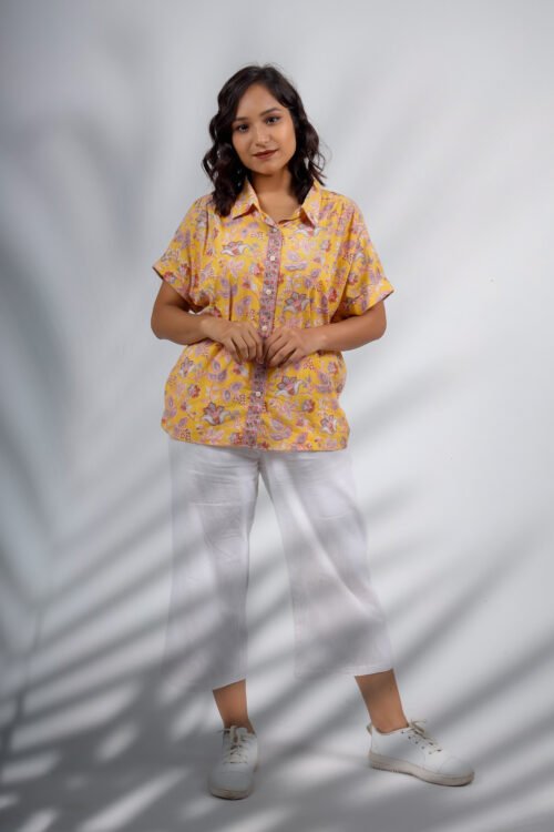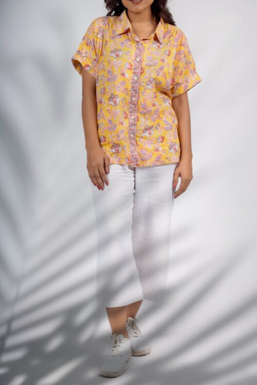 Sunburst Flora Shirt Top | Hand Block Printed Cotton Shirt for Women
