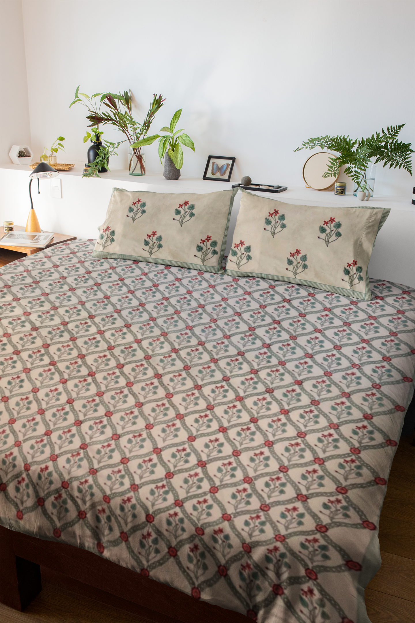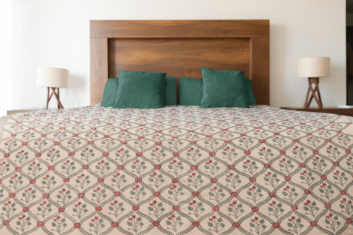 The intricate floral block print design in soothing earthy and red tones adds a touch of classic Indian elegance to your home décor. Each bedsheet is hand block printed by skilled Jaipuri artisans, making every piece unique, sustainable, and filled with cultural heritage.