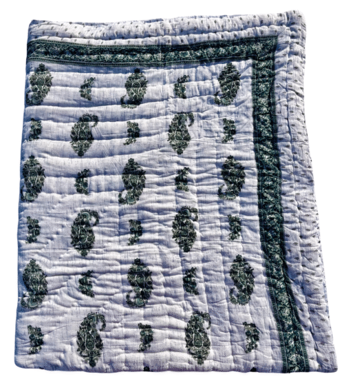 Made from 100% pure cotton, the quilt features soft, breathable layers that provide warmth in winter and comfort in summer — perfect for year-round use. Each piece is hand-stitched and screen printed by skilled artisans using time-honored techniques, creating intricate floral and paisley motifs that reflect Jaipur’s rich textile heritage.