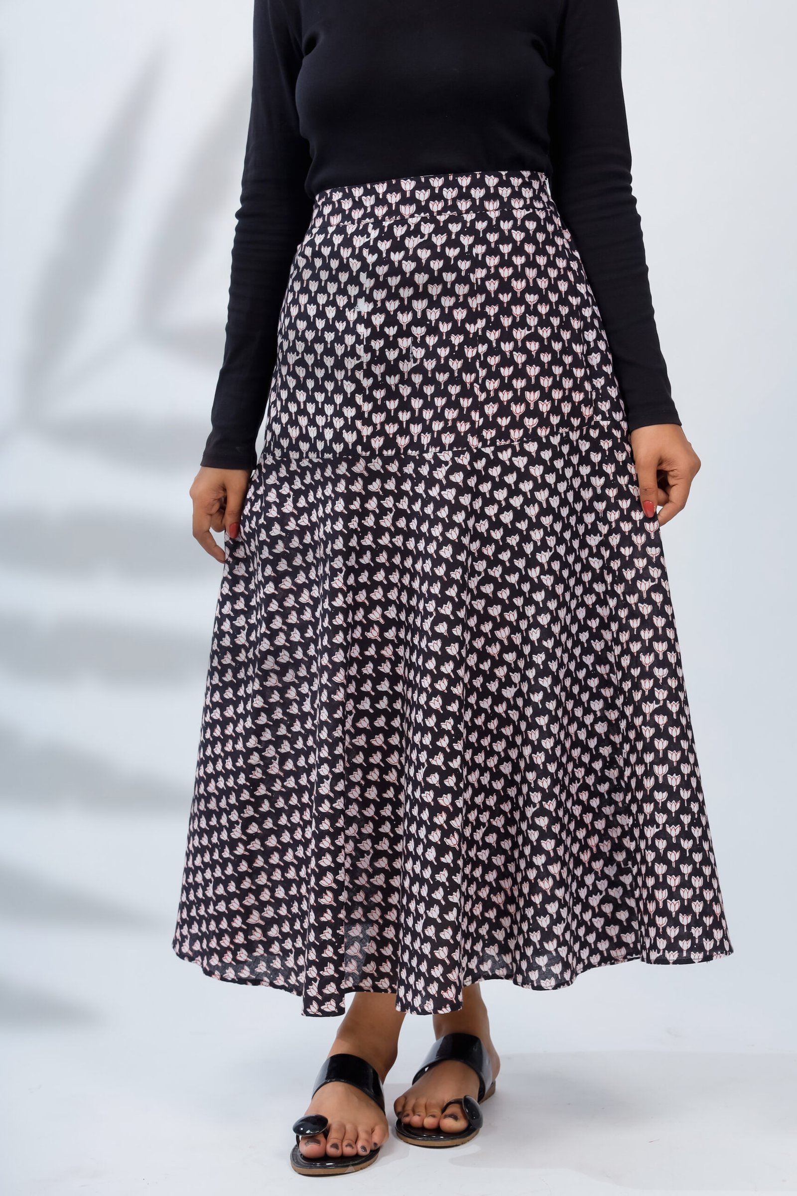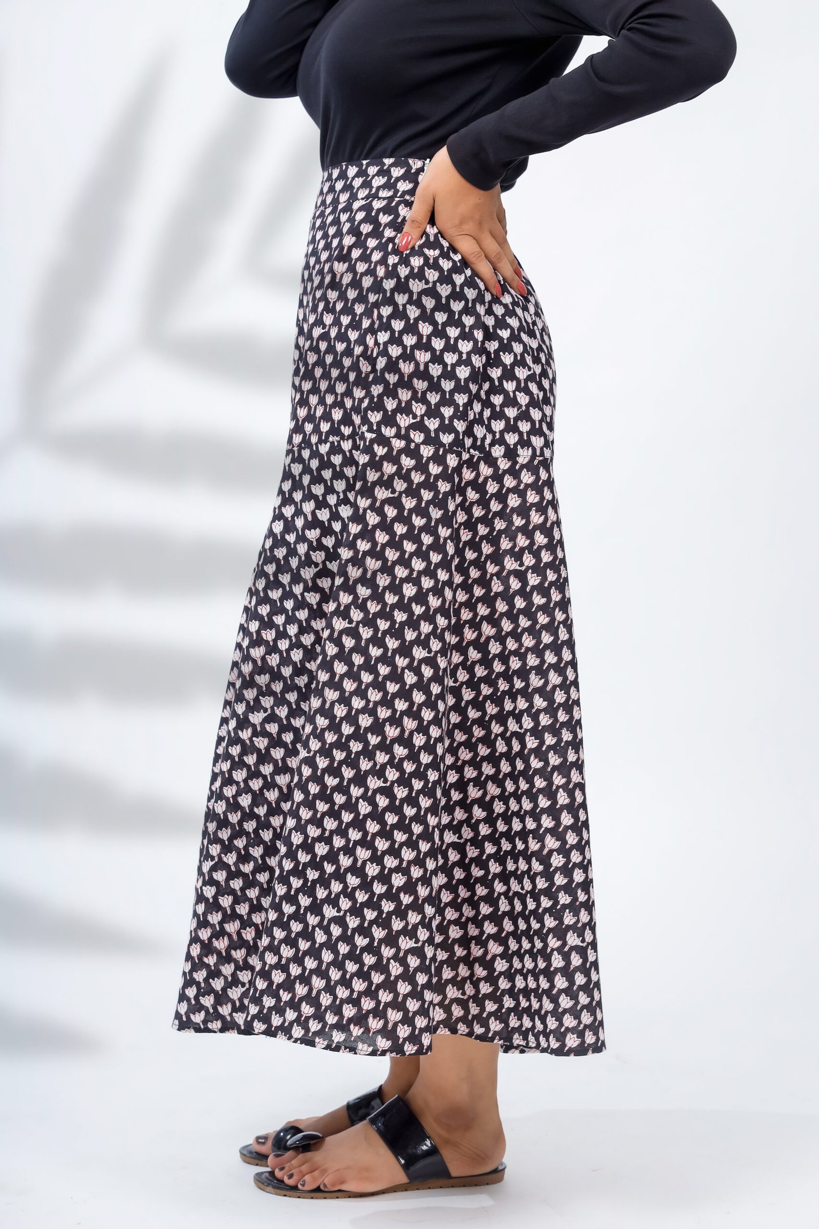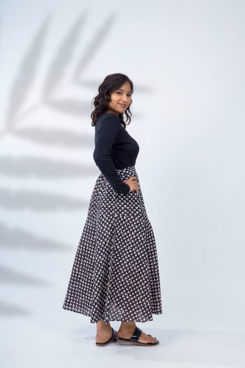 Midnight Bloom Cotton Skirt – Hand Block Printed Elegance for Effortless Everyday Style