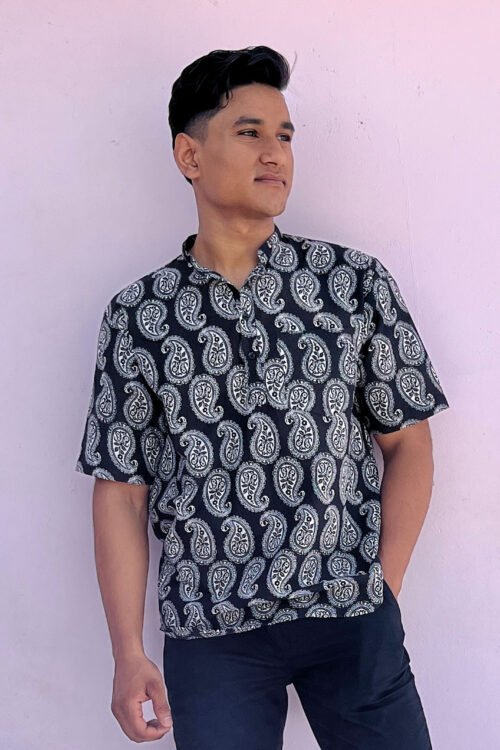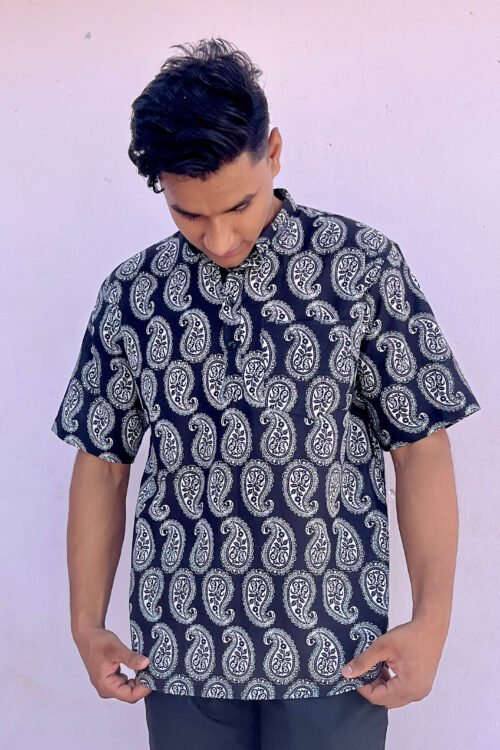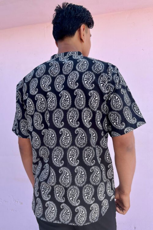 Featuring a striking paisley print in rich black and white tones, this shirt captures the essence of handcrafted Indian textiles while offering a relaxed, contemporary fit. The short sleeves and button-down front make it versatile — equally suited for casual weekends, festive gatherings, or smart-casual outings.