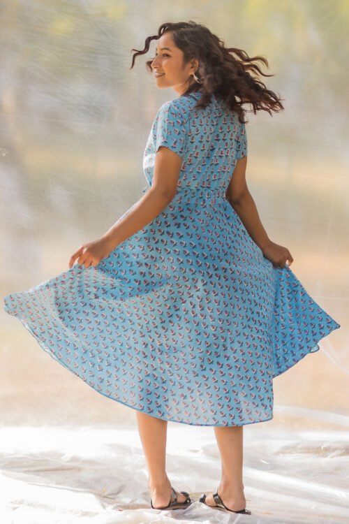 Sweet Lily Crossover Tie Up Dress – Hand Block Printed Cotton Wrap Dress from The Royal Gardens Collection